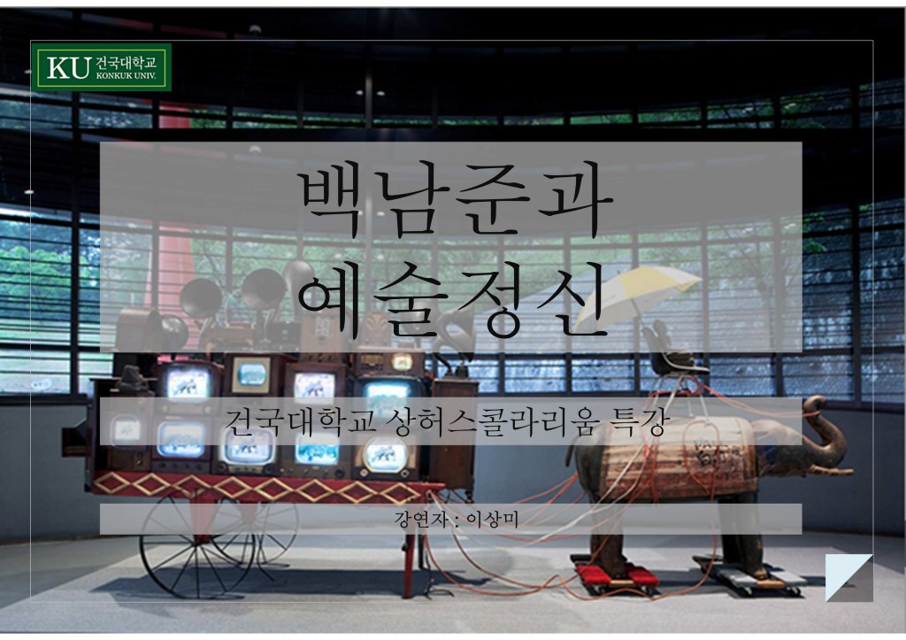 (건국대학교 ‘상허스콜라리움’은 건국대학교의 새로운 융복합 교양과목입니다. 건국대학교 상허스콜라리움은 기존의 정적인 교실 수업에서 벗어나 명사 특강과 자율 체험 학습을 결합하여 학생들의 전인적 성장을 돕는 혁신적인 교양 과목이라고 할 수 있습니다.)